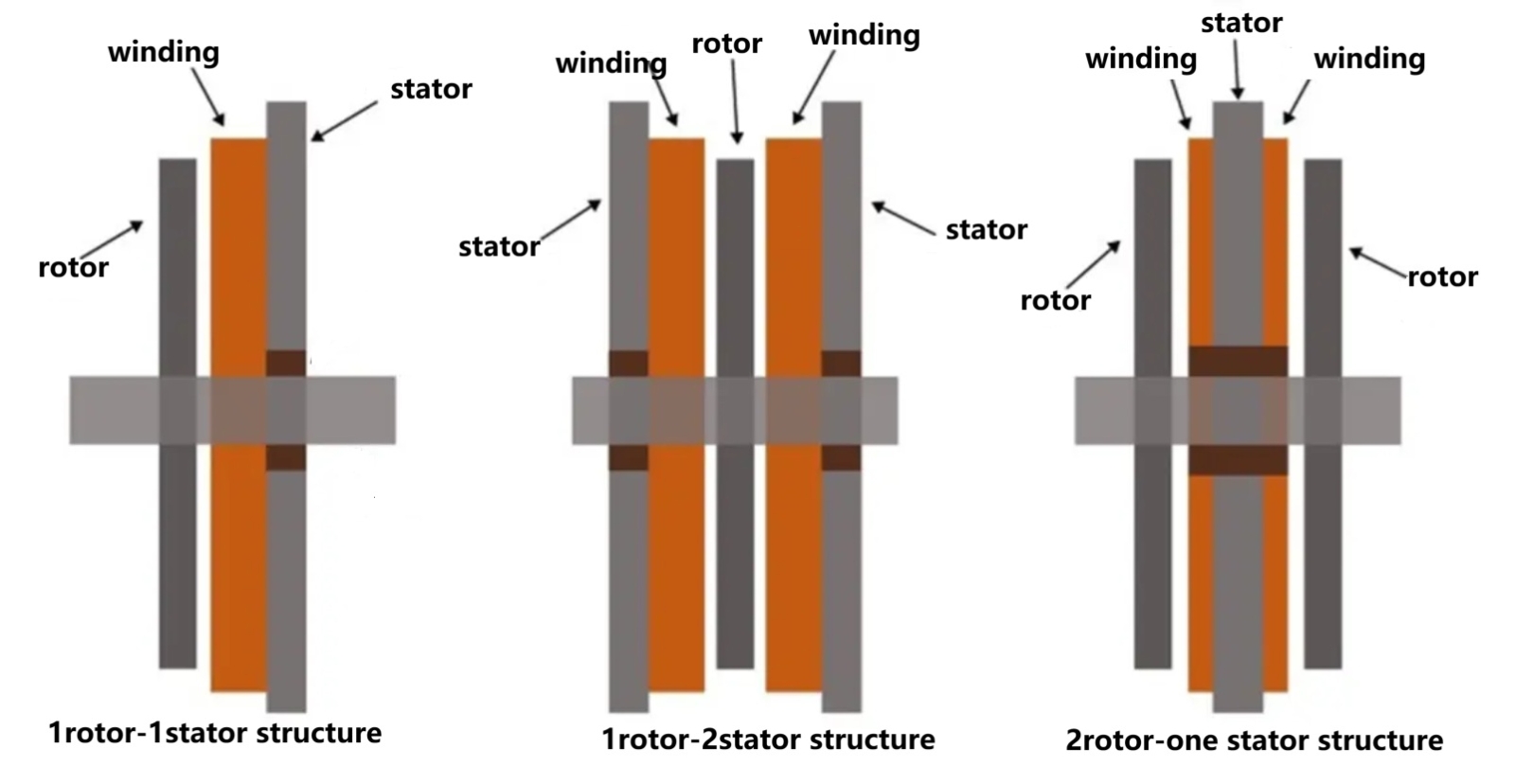 Currently, depending on the design, axial flux motors can have the following structural forms: single stator single rotor, double stator double rotor, and single stator double rotor, etc.